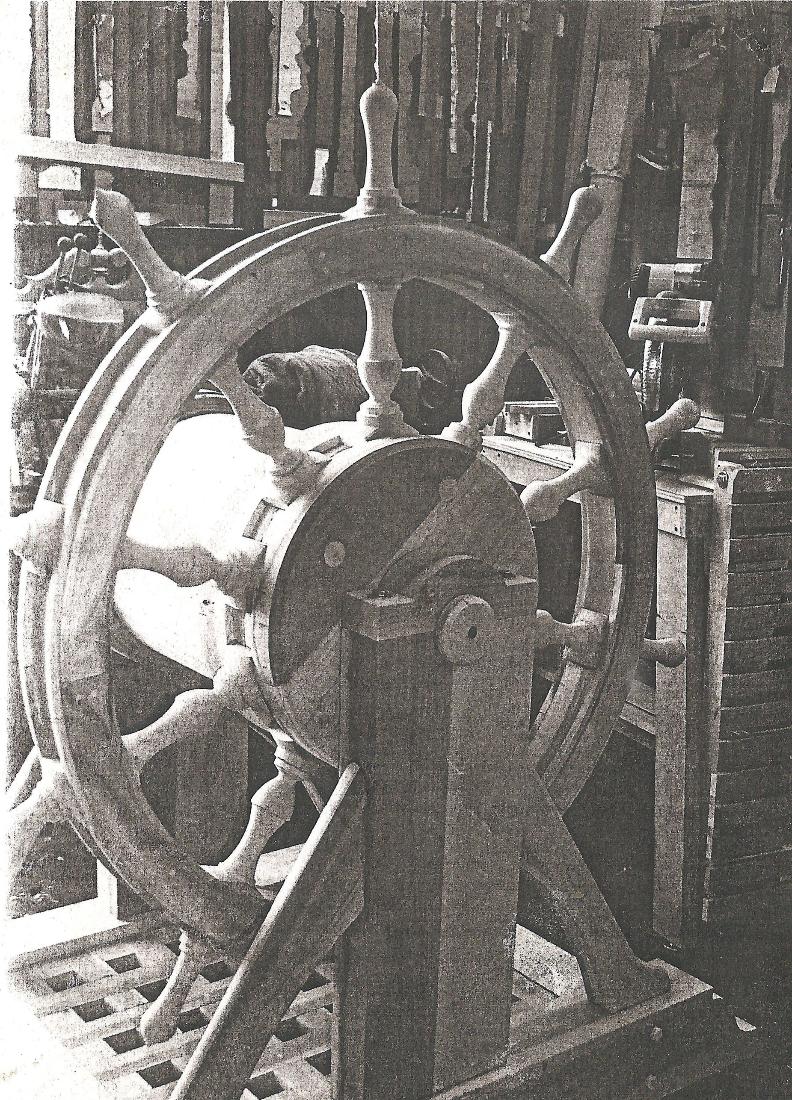 THIS SHIPS WHEEL (IN FULL SCALE) WAS ONE OF SEVEN CREATED FOR THE 'PIRATES OF THE CARRIBEAN' MOVIES. THIS ONE IS MADE MOSTLY OF POPLAR WE HOWEVER MADE TWO IN BALSA WOOD (AS BREAKAWAYS) AS WELL AS ONE FOR THE ART DIRECTOR IN SOLID RED MAHOGANY.