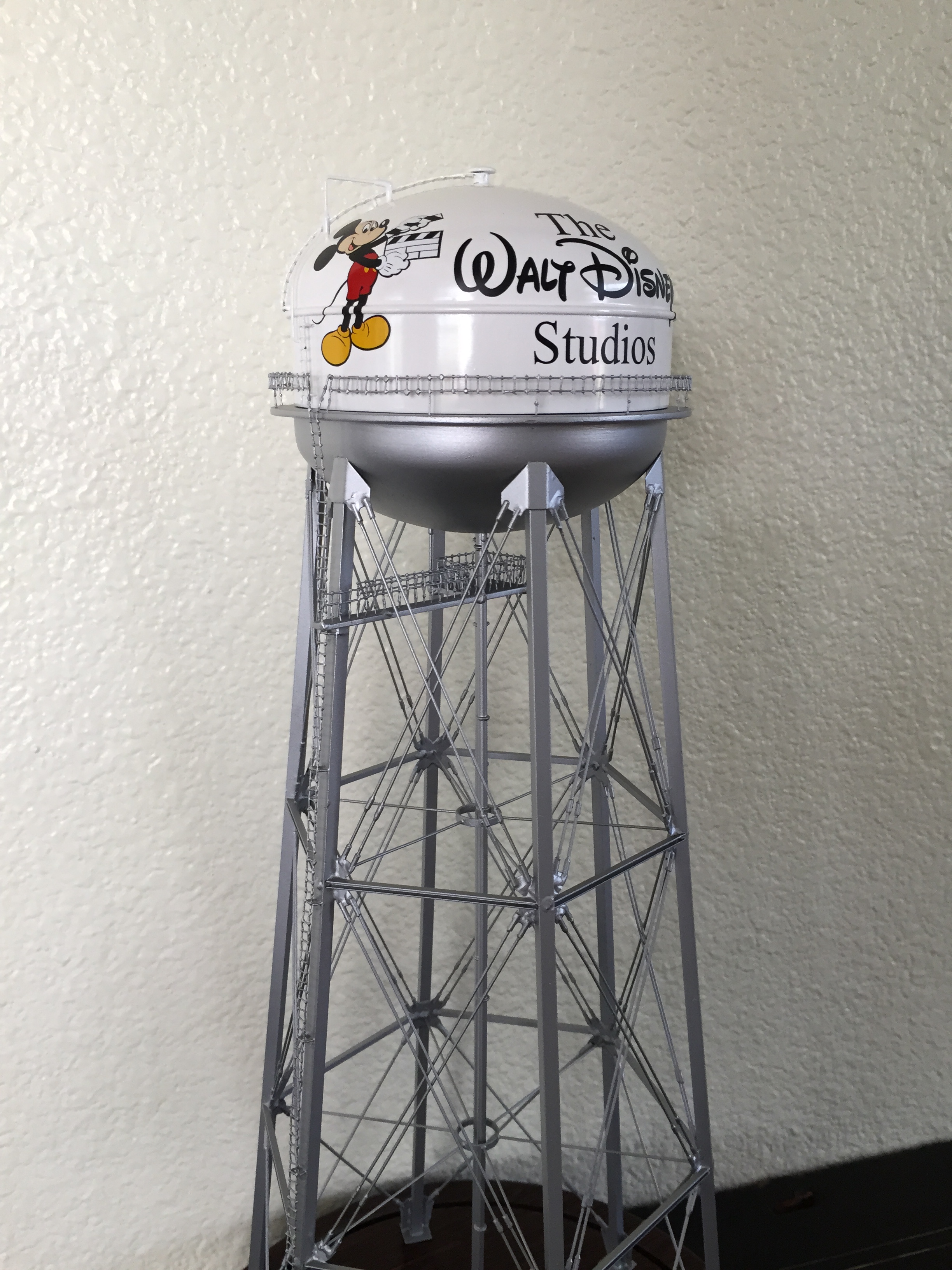 THIS MINIATURE WAS PROBABLY ONE OF THE MOST FUN PROJECTS WHILE WORKING IN THE MOULDING DEPARTMENT AT DISNEY. THIS WAS MADE AS A RETIREMENT GIFT FOR A RODGER SHOOK. WITH THE EXCEPTION OF THE TANK, THE FRAMEWORK WAS MADE COMPLETELY OUT OF BRASS TUBING AND ROD, SOLDERED TOGETHER.THE HANDRAIL AND LADDER IS HARDWARE CLOTH. THE BASE AND TOP OF THE DISPLAY CASE WERE TURNED OUT OF EXOTIC HARDWOOD, I THEN USED AN EIGHT INCH DIAMETER SLEEVE OF PLEXIGLAS FOR THE TUBE.